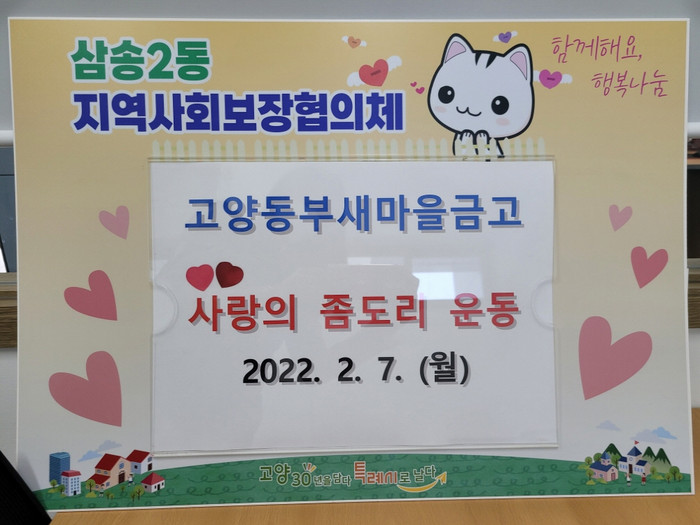[부자동네타임즈 김인수기자] 고양시 덕양구 삼송2동 행정복지센터(동장 양재관)는 고양동부새마을금고 본부에서 지난 2월 25일‘사랑의 좀도리 운동’을 통해 관내 저소득계층 12명에게 20만원을 후원했다고 밝혔다.