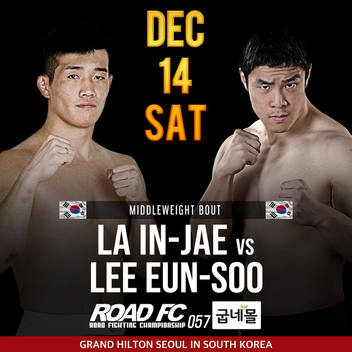 굽네몰 ROAD FC 057 XX에 앞서 진행되는 굽네몰 ROAD FC 057의 대진도 하나 추가됐다. ‘미들급 챔피언 출신’들의 맞대결인 라인재(32, 팀 코리아MMA)와 이은수(36, 임파워 컴뱃 아카데미)의 경기다.