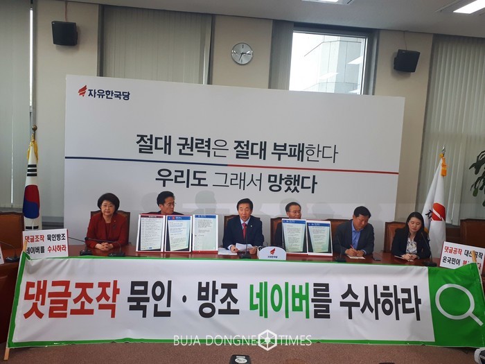 [부자동네타임즈 조영재 기자]김성태 원내대표 우리 당은 민주당원 댓글조작 사건이 드루킹 게이트로 불거지기 시작한 지난주 초부터 댓글사건 특검을 요구하는 천막농성을 시작하면서 댓글공작국민신고센터를 운영하고 있다. 신고센터를 연 이후 댓글공작과 관련된 제보들이 수차례 들어왔는데 오늘은 그 중 상당한 신뢰성이 있다고 판단되는 몇 가지만 추려서 말씀드린다.