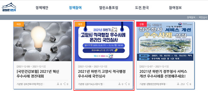 사전 온라인 국민심사는 광화문1번가 홈페이지의 국민심사 코너에서 12월 13일까지 진행된다.
