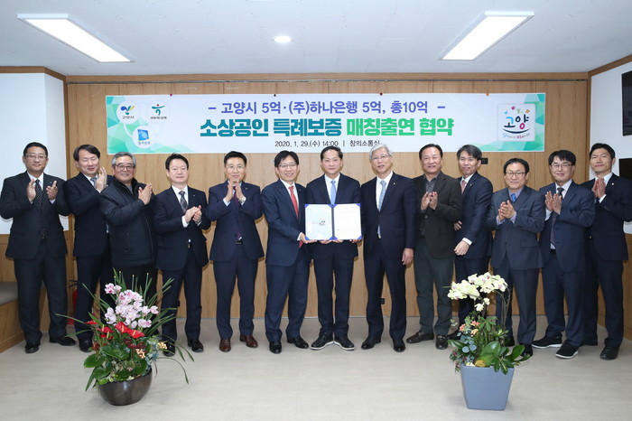 이날 협약식에서 고양시와 하나은행은 각 5억원씩 총 10억원을 매칭 출연하고, 추가로 고양시가 10억원을 출연하여 총 20억원의 출연금을 조성한 후 그 10배수인 200억원 규모로 경기신용보증재단이 소상공인 특례보증을 운용키로 했다.