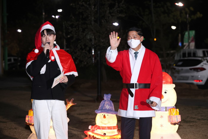 이날 점등식에는 매직 크리에이터 니키의 마술 공연, 어린이 가족 응원 영상 공개가 이어졌다. 이재준 고양시장도 산타 복장을 하고 등장했다.