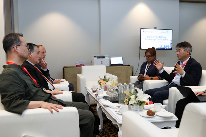 이동환 시장은 3일 인도네시아에서 열리고 있는‘포용적 평생학습 컨퍼런스(Conference on Inclusive Lifelong Learning)’ 현장에서 라울 코테라(Raul Valdes Cotera) 유네스코 평생학습연구소(UIL) 정책본부장, 강대중 국가평생교육진흥원(NILE) 원장과 간담회를 가졌다.