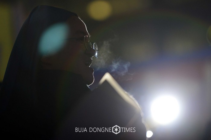 9일 오후 서울 광화문광장 세월호광장에서 천주교 세월호 연석회의 주최로 열린 세월호 참사 1000일 관련 정권회개 민중위로 시국미사에서 참가 수녀가 추모 성가를 부르고 있다. 2017.01.09.