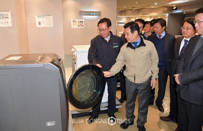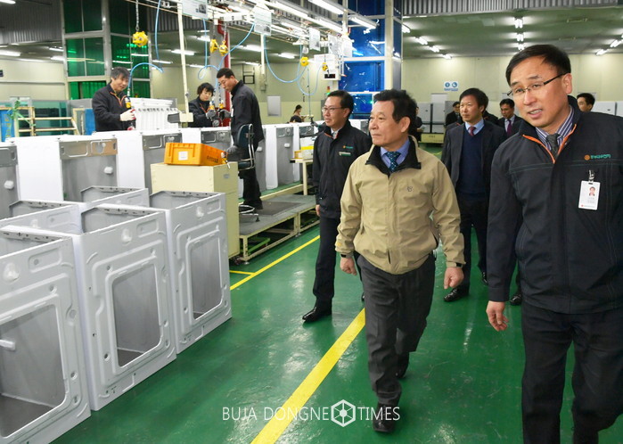 | △윤장현 광주시장이 산업현장의 목소리를 듣기 위해 광산구 하남산단 동부대우전자(주)를 방문, 기업관계자로부터 기업 현황을 듣고 생산현장을 둘러보고 있다 |