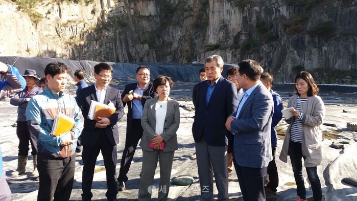 [익산=부자동네타임즈 유희준 기자] 익산시민들을 ‘충격과 분노의 도가니’로 몰아넣고 1급 발암물질인 비소가 포함된 불법폐기물을 폐석산에 대량 매립해온 ㈜해동환경(익산시 낭산면) 현장을 10월 9일(일), 오후 3시 국민의당 이상돈(환경노동위원회 비례대표) 국회의원, 조배숙(익산을) 국회의원, 정헌율 익산시장, 시관계자, 그리고 낭산면주민대책위원 등 수많은 주민들이 매립현장을 둘러보며 대책을 논의했다.