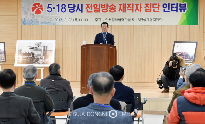 광주시 5·18진실규명지원단은 23일 오전 11시부터 낮 12시20분까지 80분 동안 5·18기록관 7층에서 1980년 당시 전일방송에 근무했던 재직자 22명을 대상으로 집단인터뷰를 실시했다.
