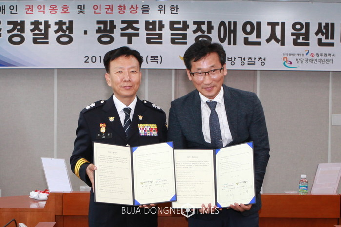 | △광주지방경찰청은 광주지방경찰청 무등홀에서 광주발달장애인지원센터와 발달장애인 권리보호 및 인권향상을 위한 업무협약을 체결하였다 |