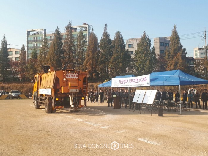 구는 제설대책 수립에 앞서 지난 9일에는 탄천펌프장에서 ‘제설장비 시범 가동훈련’을 실시하기도 했다. 118대의 제설장비를 동원하여 실무자들이 장비를 점검하고 제설재를 직접 살포하는 등 제설작업을 위한 만반의 준비를 마쳤다.