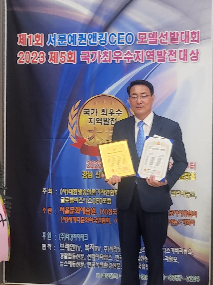 또한 송찬용외 9명이 추천하등 2023 제5회 국가 최우수 지역발전 대상 세계융합의 시대를 맞이하여 세계 속의 우리 민족 선열들의 거룩한 정신을 기리고 정치, 경제, 사회문화예술 언론 진흥 등 각 분야에서 글로벌 리더를 향해 발전해 가며 또 국가와 지역 발전을 위해 탁월한 경쟁력을 지닌 칭찬 주인공과 기업, 기관들을 발굴해 노고를 치하하고 시상함으로써 세계를 향해 진취적인 인식을 저 변화 시켜 모두에게 귀감이 되도록 하는 영예로운 상으로 전 국민의 참여와 나아가 국가의 융성한 발전에 기여하여 "제5회 국가최우수지역발전대상"를 수상했다.