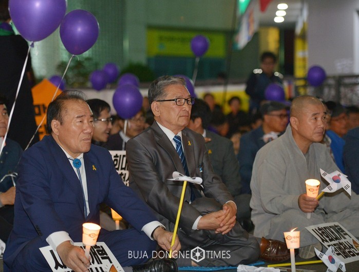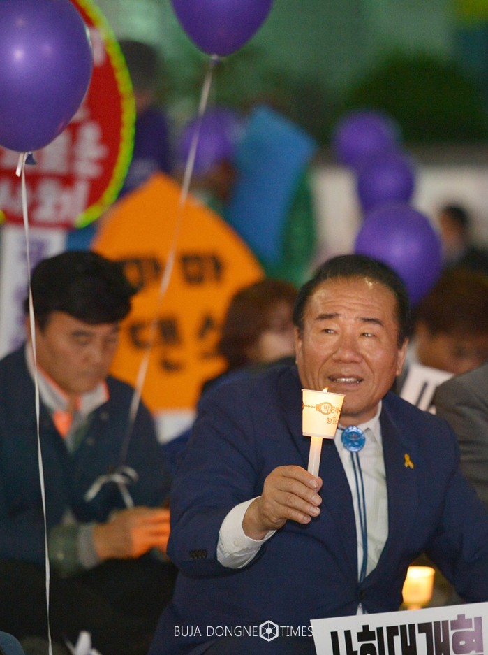 | △장휘국 광주시교육감이 '촛불혁명 1주년'을 맞아 광주 동구 금남로 일원에서 열린 '촛불 1주년 광주시민대회'에 참석해 시민들과 함께 촛불을 들고 '님을 위한 행진곡'을 제창했다 |