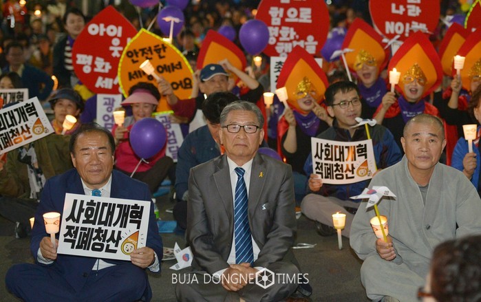 광주 촛불집회는 정권 퇴진을 촉구하며 지난해 10월 29일 처음 시작했다. 작년 10월 29일부터 올해 4월 15일까지 21차에 진행되며 누적 인원 57만 명이참여 했다.
