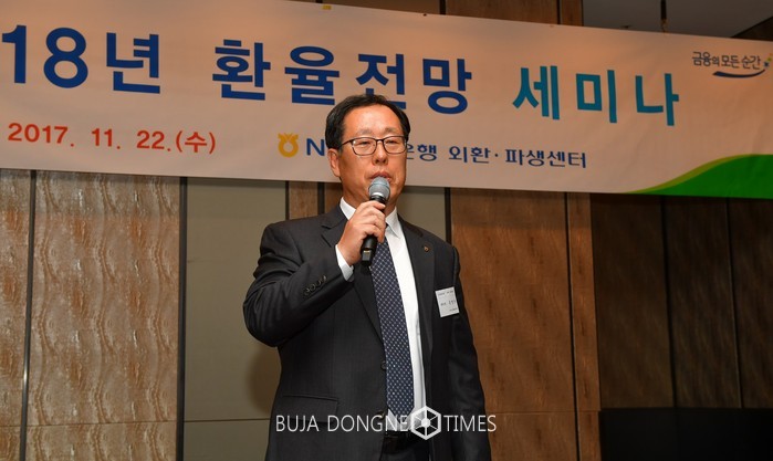 [부자동네타임즈 이현재 기자]NH농협은행(은행장 이경섭)은 22일 서울시 종로구에 위치한 포시즌스호텔에서 수출입 기업고객과 영업점 직원 등 100여명을 초청해 「2018년 환율전망 세미나」를 개최하였다.