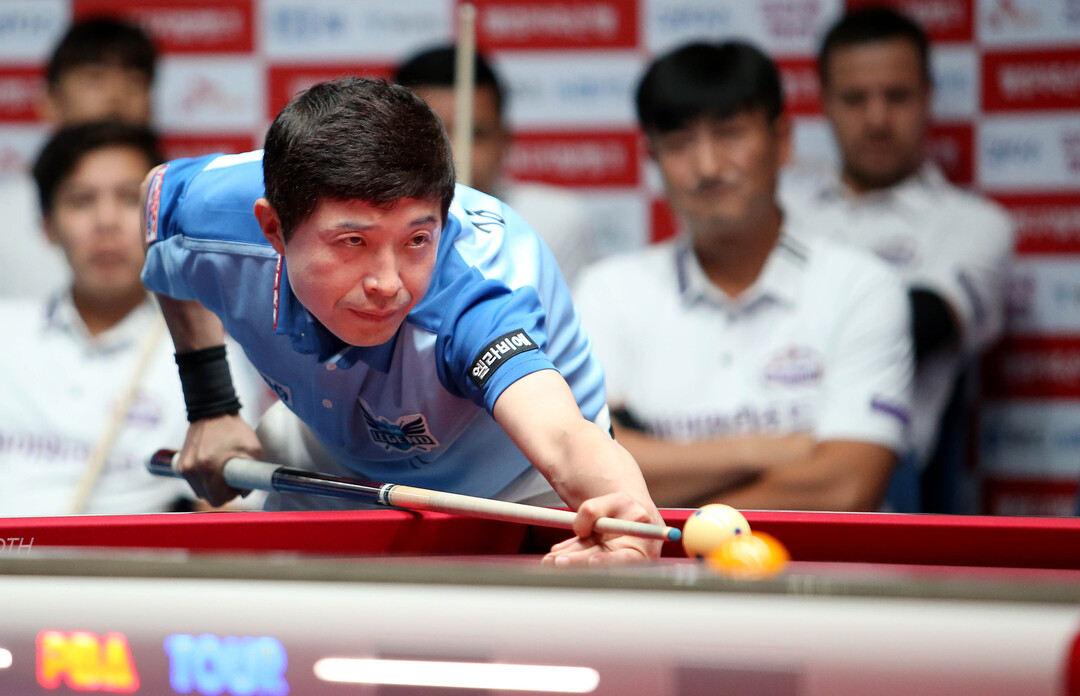 하이원리조트는 블루원리조트와의 리조트 맞대결서 풀세트 끝에 웃었다. 세트스코어 3:3 이후 승부를 가르는 7세트서 ‘영건’ 임성균이 강민구를 6이닝 접전 끝에 11:10으로 제압하며 4라운드 첫 승을 신고했다.