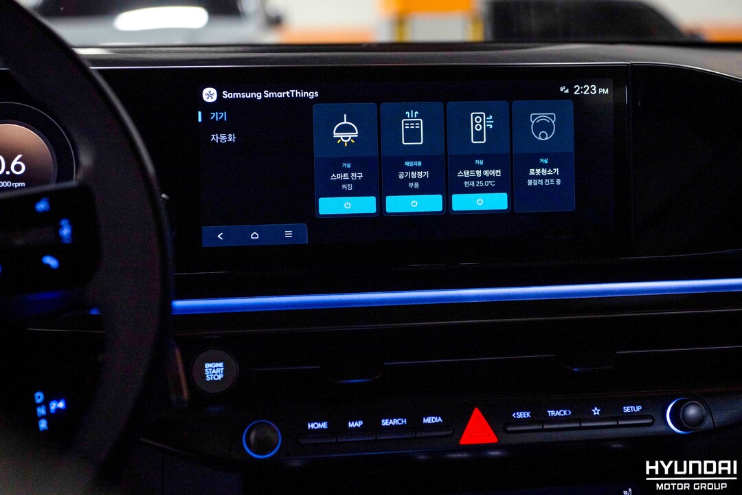 [부자동네타임즈 = 서소민 기자] 현대차·기아가 차량의 커넥티드 카 서비스와 삼성전자의 글로벌 스마트홈 플랫폼인 '삼성 스마트싱스' 서비스를 연동한 '카투홈' 서비스를 개시한다고 23일 밝혔다. 사진은 카투홈 서비스를 통해 차량과 연동된 기기. 2026.3.23 [현대자동차·기아 제공