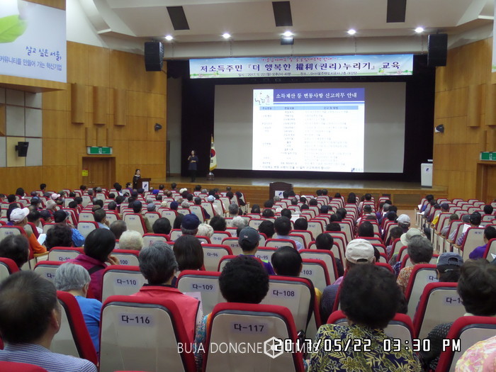 [부자동네타임즈 이병도 기자]강남구(구청장 신연희)는 오는 20일 오후 2시40분 일원동 소재 서울주택도시공사 대강당에서 올 11월부터 달라진 각종 복지정보를 저소득 주민에게 안내하는‘더 건강한 인생(人生) 누리기’교육을 실시한다고 19일 밝혔다.