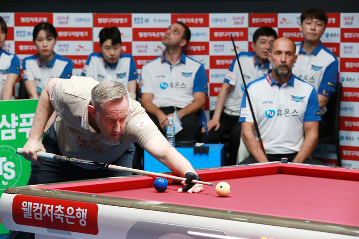 이어 지난 시즌 최하위에서 이번 시즌 우승후보로 올라선 휴온스가 SK렌터카에 세트스코어 1:3을 4:3으로 뒤집고 짜릿한 역전 승리를 거뒀다. ‘퍼펙트 가이’ 하비에르 팔라존(스페인)이 1,5세트를 챙긴데 이어 ‘한국 3쿠션 간판’ 최성원이 응오 딘 나이(베트남)를 7세트서 11:10(13이닝)으로 제압하면서 팀 승리를 완성했다. 마지막 경기서는 임정숙과 백민주가 3승을 합작한 크라운해태가 하이원리조트를 세트스코어 4:2로 꺾고 시즌 첫 승을 신고했다.