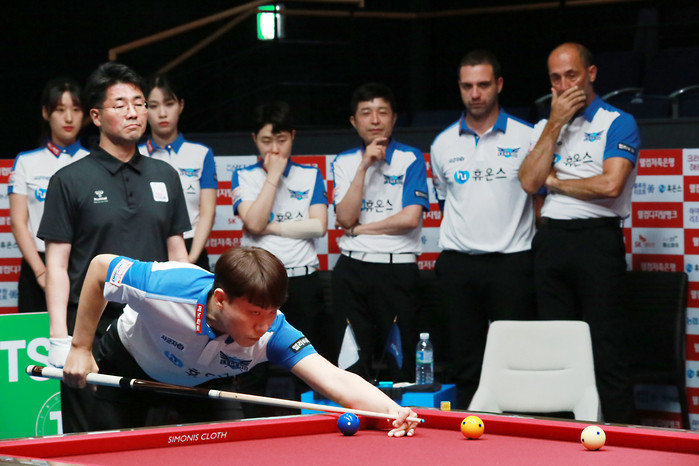 지난 3일 경기도 고양시 ‘고양 킨텍스 PBA 스타디움’에서 열린 ‘웰컴저축은행 PBA 팀리그 2023-2024’ 1라운드 개막 경기서 블루원리조트는 웰컴저축은행을 풀세트 접전 끝에 세트스코어 4:3으로 승리를 거두고 기분 좋은 새 시즌을 맞았다. 웰컴저축은행은 김예은이 2승을 거두는 맹활약 속에 마지막 세트까지 추격했으나 아쉽게 고배를 마셨다.