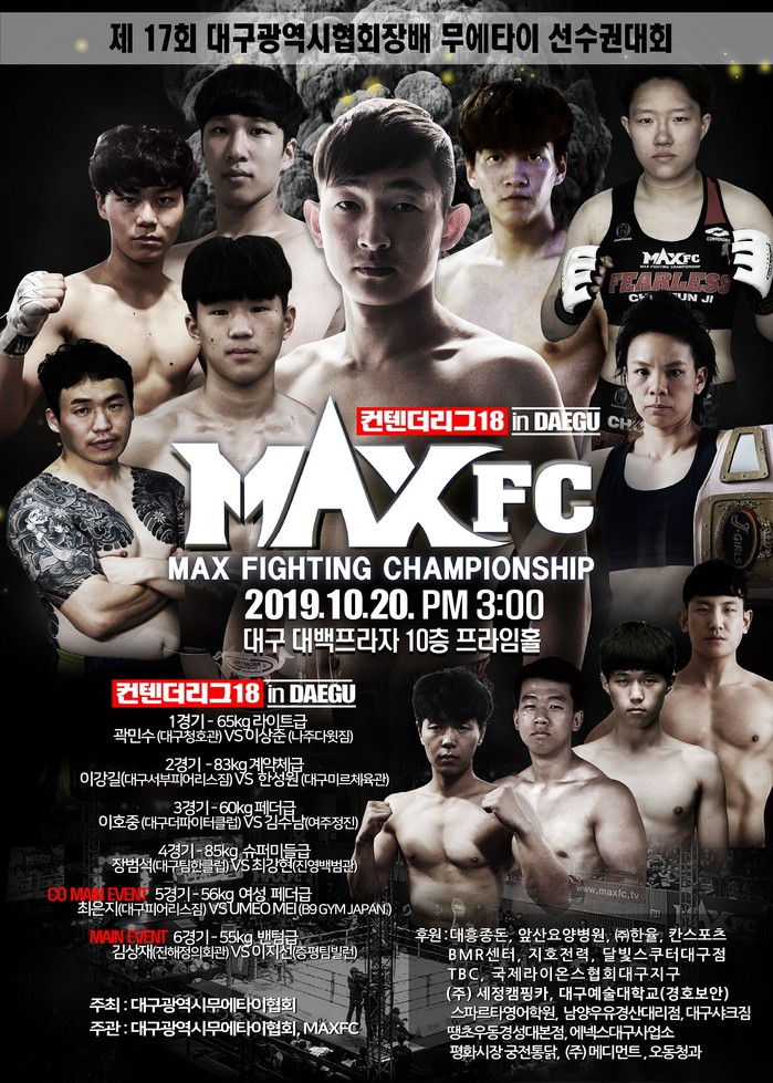 한편 MAX FC 컨텐더리그 18 대구는 10월 20일 대구 대백프라자 10층 프라임홀에서 열린다. MAX FC 유튜브 채널에서 생방송으로 진행된다.