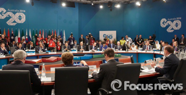 △ 박근혜 대통령이 주요 20개국(G20) 정상회의 1세션에서 8번째 선도발언자로 나서 북한 등 동북아 지역의 인프라 투자를 위한 국제사회의 협력을 제안했다. 사진은 2014년 러시아에서 열린 G20 정상회의 전경. <사진출처=청와대> |