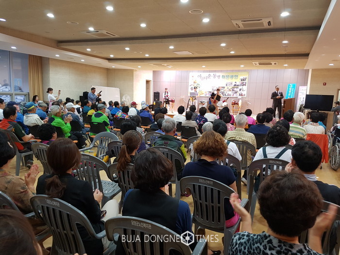 공연에 참석한 200여 명의 어르신들은 난타, 가요, 민요, 벨리댄스, 한국무용, 각설이 춤 공연 등 다양한 프로그램으로 즐거운 한 때를 보냈다.