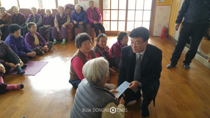 방광식 산전리 노인회장은 “거동이 불편한 대상자들이 많아 어려움이 많은 상황이지만 이렇게 직접 방문해 전달해 주어 고맙다.”며 감사의 뜻을 전했다.