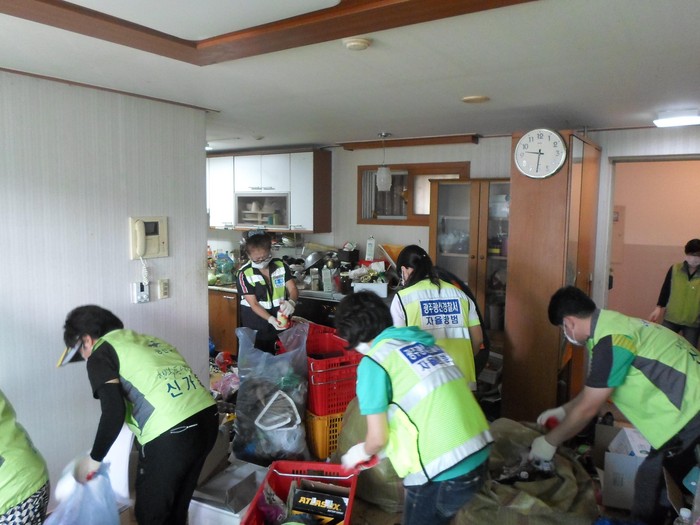광주 광산구 신가동(동장 황만주) 공동체가 저장강박 가구 청소에 나섰다. 청소 봉사에는 지역사회보장협의체, 우산동 자원봉사캠프, 광산구장애인 복지관, 광산구장애인가족지원센터, 바라밀실허바우스와 주민센터 공직자 30여 명이 함께 했다.