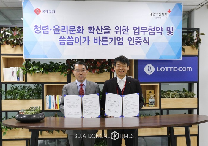[부자동네타임즈 이병도 기자]온라인 종합쇼핑몰 롯데닷컴(대표 김형준)이 대한적십자사 서울지사(회장 김흥권)와 함께 사내 청렴윤리문화 정착을 위해 손을 잡았다. 12월 5일(화) 롯데닷컴은 대한적십자사 서울특별시지사와 청렴문화 확산 및 윤리경영 정착에 관한 업무협약을 체결했다.