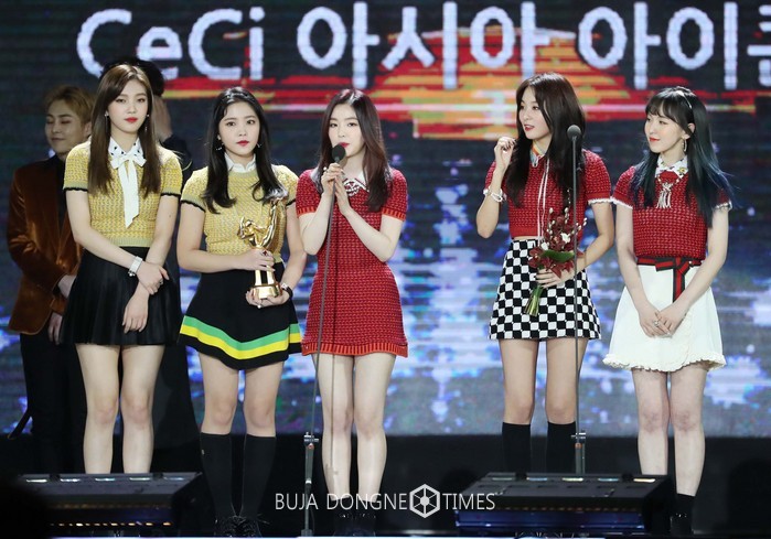 14일 오후 경기도 일산 킨텍스에서 열린 ‘제 31회 골든디스크‘ 음반 부문 시상식에서 ceci 아시아 아이콘상을 수상한 레드벨벳이 수상소감을 밝히고 있다. ‘제31회 골든디스크 어워즈’는 한 해 동안 사랑받은 대한민국 대중가요를 선정해 결산하는 무대로 14일 까지 킨텍스에서 진행되며 JTBC, JTBC2를 통해 생중계된다. 2017.01.15. (사진=일간스포츠 제공)