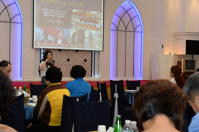 △광주 광산구노사민정협의회는 '아파트공동체 워크숍'을 열었다, 워크숍에는 경비근로자, 청소근로자, 입주민 등 아파트 구성원이 함께 했다