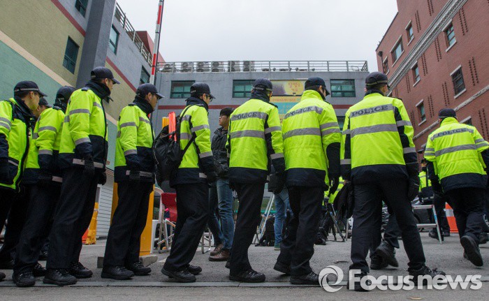 (서울=포커스뉴스) 한상균 민주노총 위원장이 자진출두 할 것으로 알려진 10일 오전 서울 종로구 조계사에 경찰 병력들이 집결하고 있다.