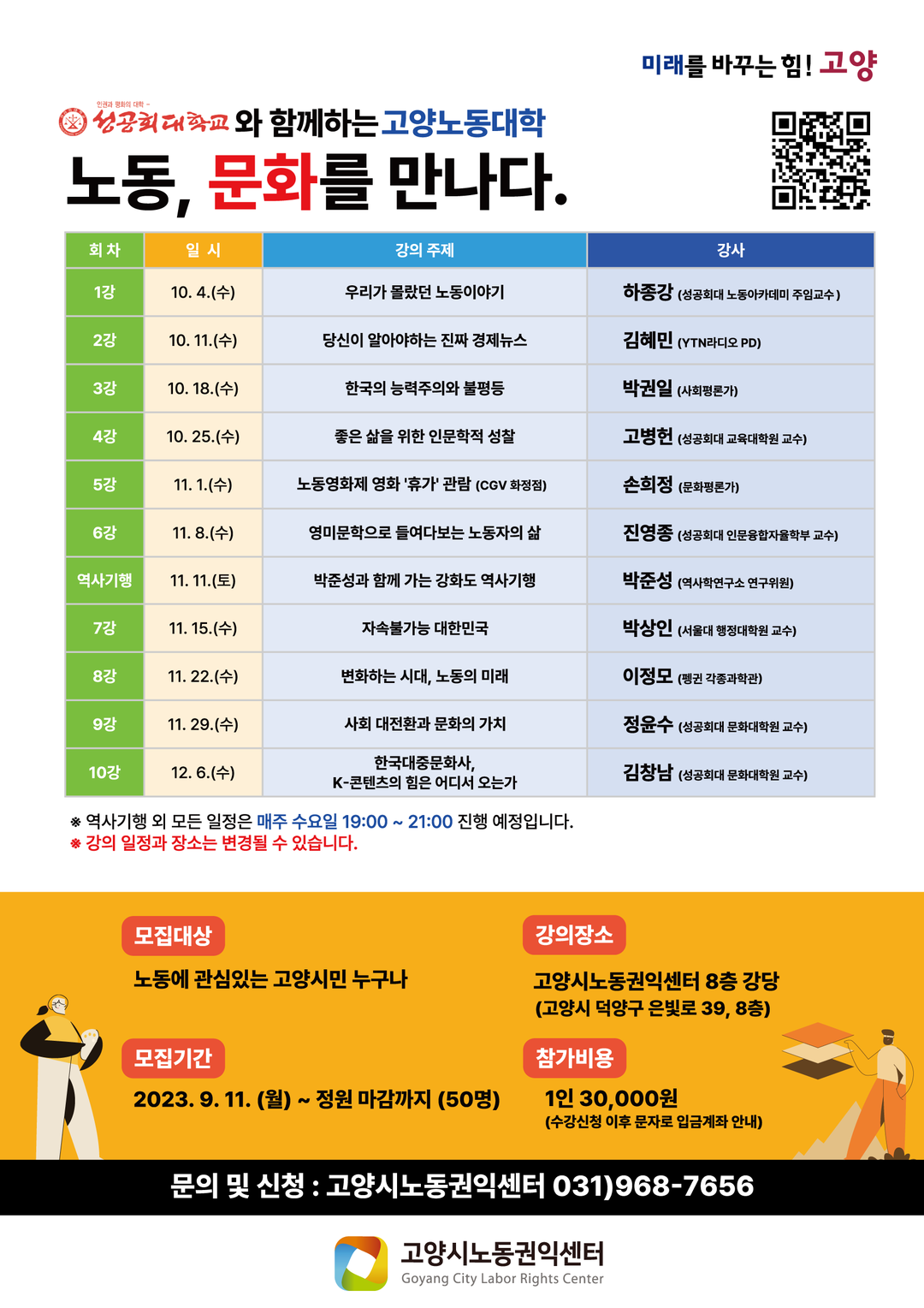 - 10. 4. ~ 12. 6. ‘노동, 문화를 만나다’ 주제로 11개 강좌 진행.