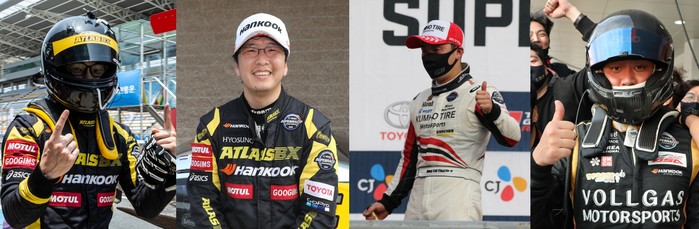 [사진설명] 2020 cj대한통운 슈퍼레이스 챔피언십 슈퍼 6000 클래스 시즌 챔피언에 도전하고 있는 김종겸, 최명길, 정의철, 김재현(왼쪽부터)