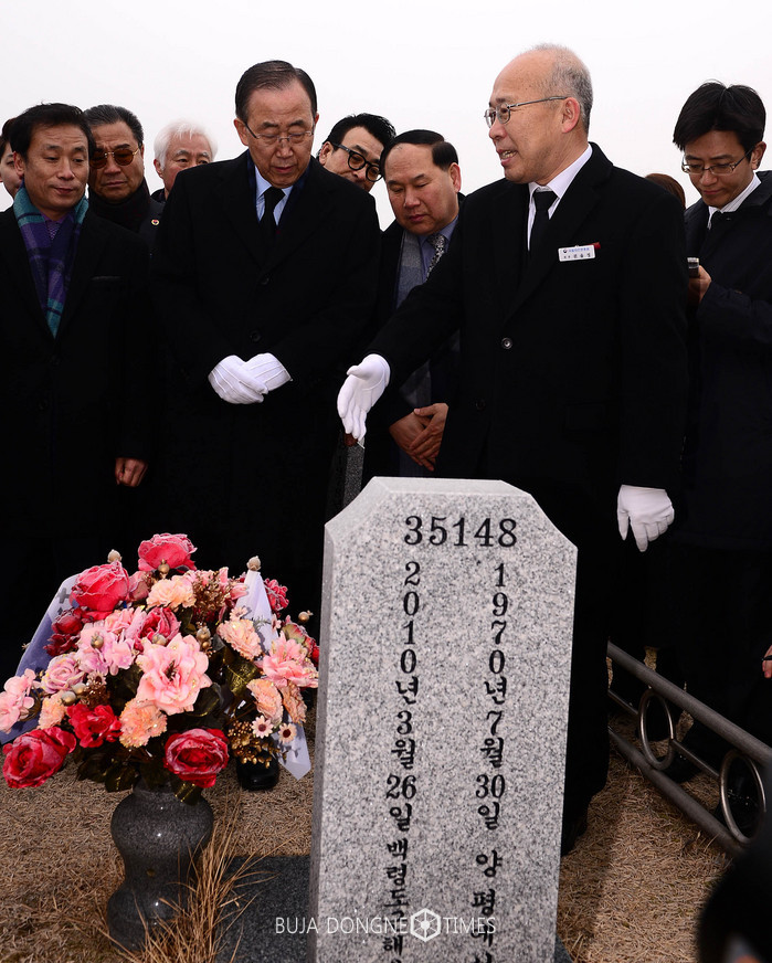 반기문 전 유엔 사무총장이 19일 오전 대전 유성구 국립대전현충원 천안함46용사 묘지를 둘러보고 있다. 2017.01.19