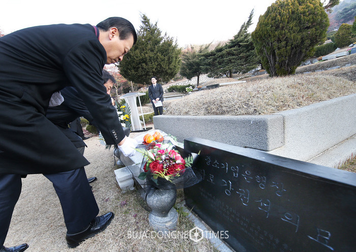 [부자동네타임즈 이현재 기자]IBK기업은행은 25일 오전 경기 성남시 분당구 야탑동 분당 메모리얼파크에서 故 강권석 은행장의 10주기 추모식을 열고, 고인의 업적과 뜻을 기렸다.