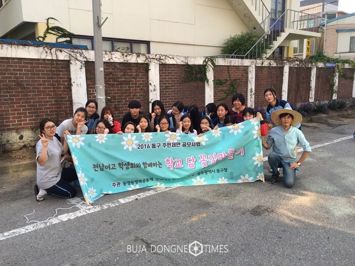 이번 프로젝트는 광주광역시 동구청이 후원하고 전남여고 학생회(인권동아리 인권사랑)와 마을 공동체가 함께 진행했다. 동구청은 예산뿐 아니라 호미, 삽 등 장비도 지원했다.