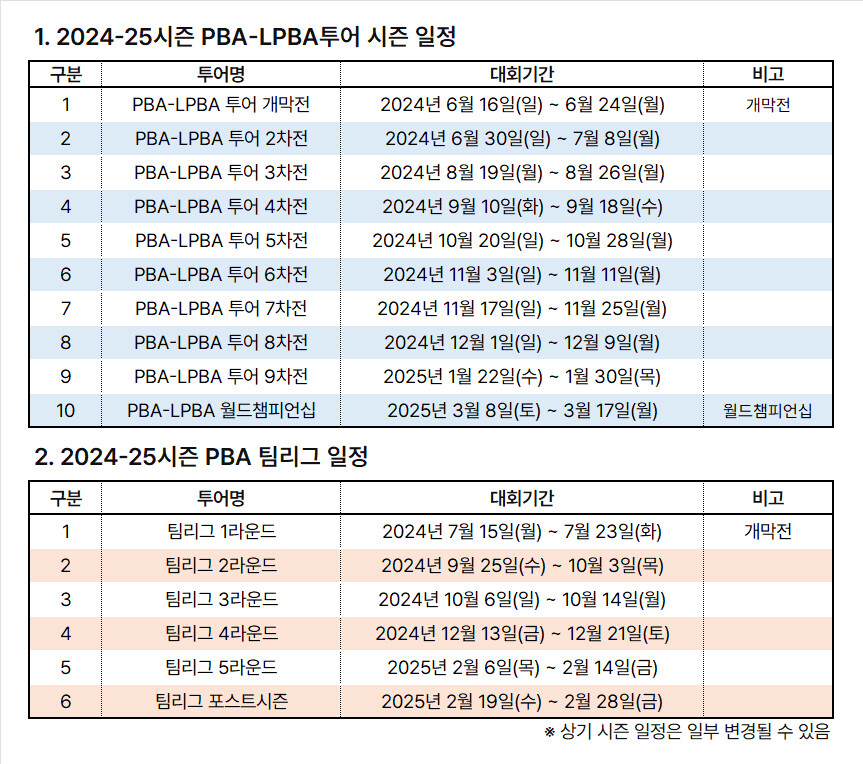 한편, PBA는 내달 10일 중구 프레스센터에서 PBA-LPBA투어 시즌 개막전 미디어데이를 진행한다. 이 자리에는 PBA-LPBA투어를 대표하는 선수들이 참석해 새 시즌에 대한 각오와 목표를 밝힐 예정이다.