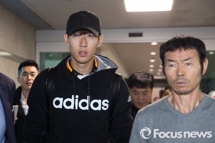 (인천=포커스뉴스) 손흥민(23·토트넘) 선수가 10일 오전 한국 축구 대표팀 복귀를 위해 인천국제공항을 통해 부친과 함께 입국하고 있다.