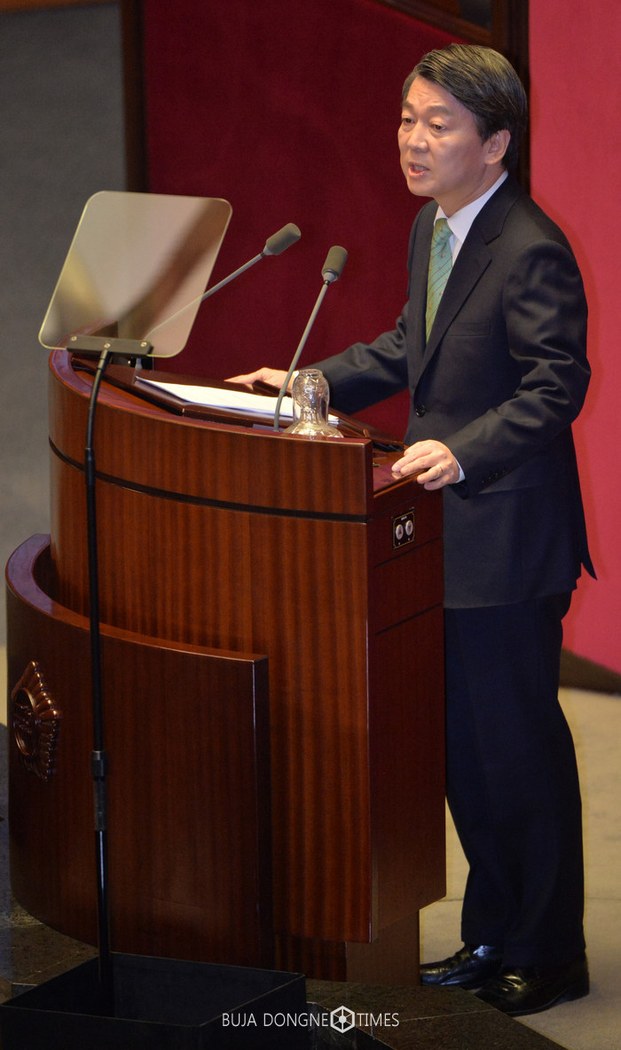 6일 오전 서울 여의도 국회 본회의장에서 열린 제4차 본회의에 참석한 국민의당 안철수 전 대표가 교섭단체대표연설을 하고 있다. 2017.02.06.