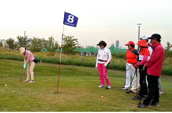 [부자동네타임즈 전형득 기자] ‘여의도에 웬 골프장’이냐고 의아해하겠지만 63빌딩 뒤편 샛강 둔치에는 약 500㎡, 9개 홀의 규모를 가진 ‘파크골프’ 장이 있다.