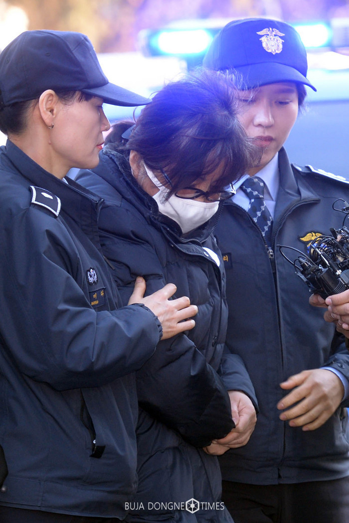 국정농단의 중심에 있는 최순실 씨가 16일 오전 서울 종로구 헌법재판소에서 열린 박근혜 대통령 탄핵심판 5차 변론에 출석하기 위해 호송차에서 내려 대심판정으로 이동하고 있다. 2017.1.16.
