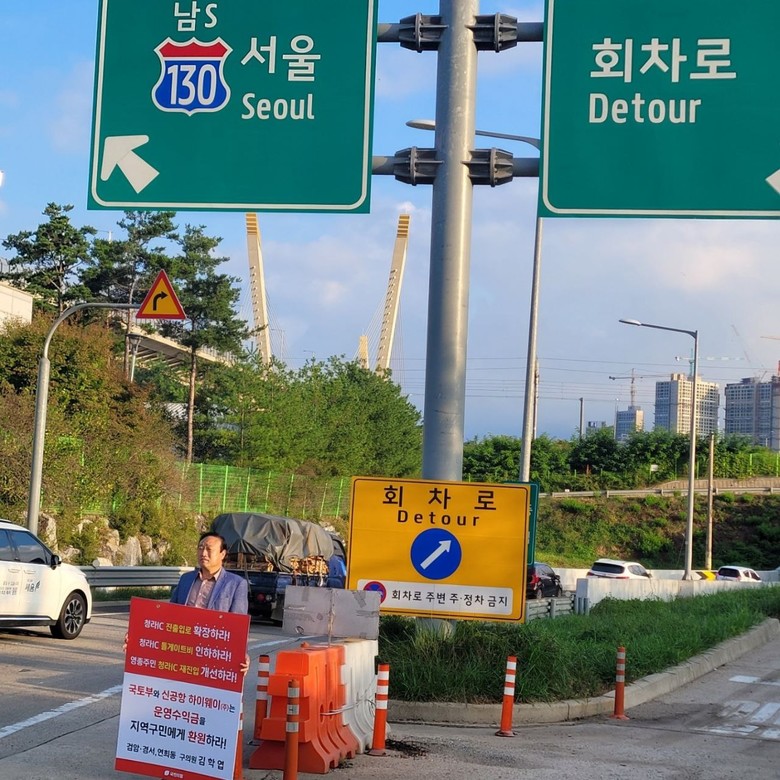 김학엽 의원은 2022년 10월 5일부터 45일간 국토교통부 및 청라IC 관리 주체인 신공항하이웨이(주)를 대상으로 1인 시위를 진행하며, 지역 주민들의 교통 체증 해소를 위한 대책 마련을 촉구해왔다.