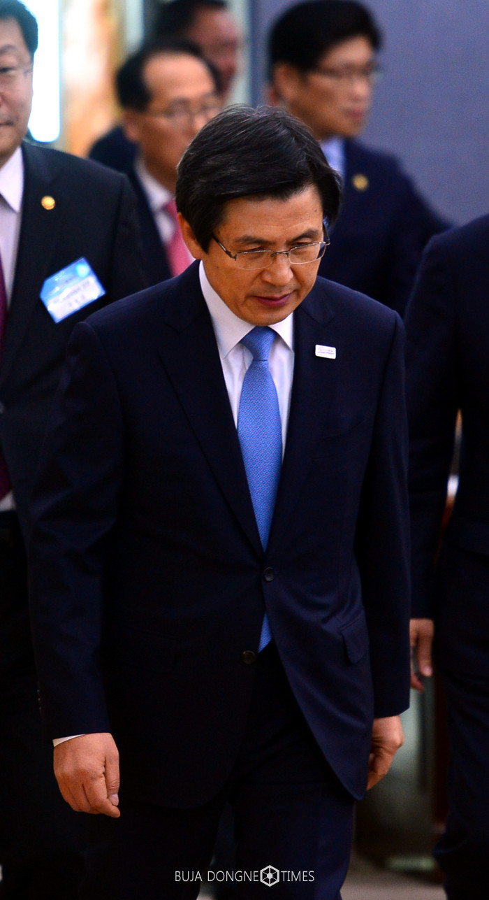 황교안 대통령 권한대행 국무총리가 27일 오전 무역투자진흥회가 열린 서울 종로구 정부서울청사 별관 회의실에 입장하고 있다. 2017.02.27.