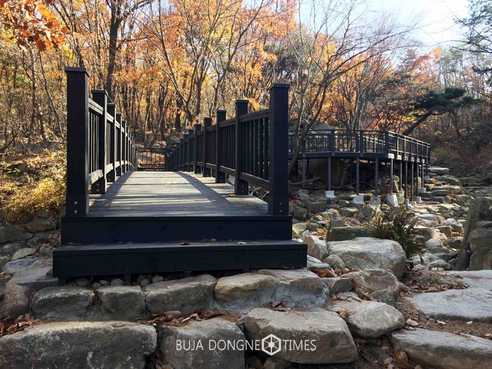 관악산 호수공원부터 무너미고개 등산로 2.5km 구간은 우기 시 등산이 어려웠던 계곡에 목교를 설치한 것을 비롯해 돌계단과 노면을 단장하고, 배수체계도 개선했다.