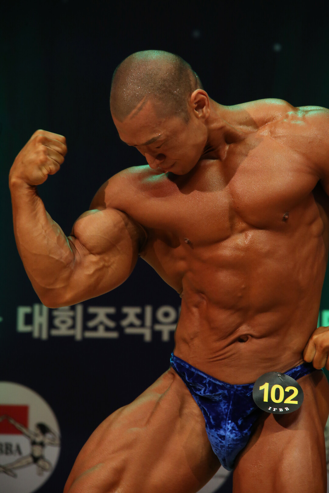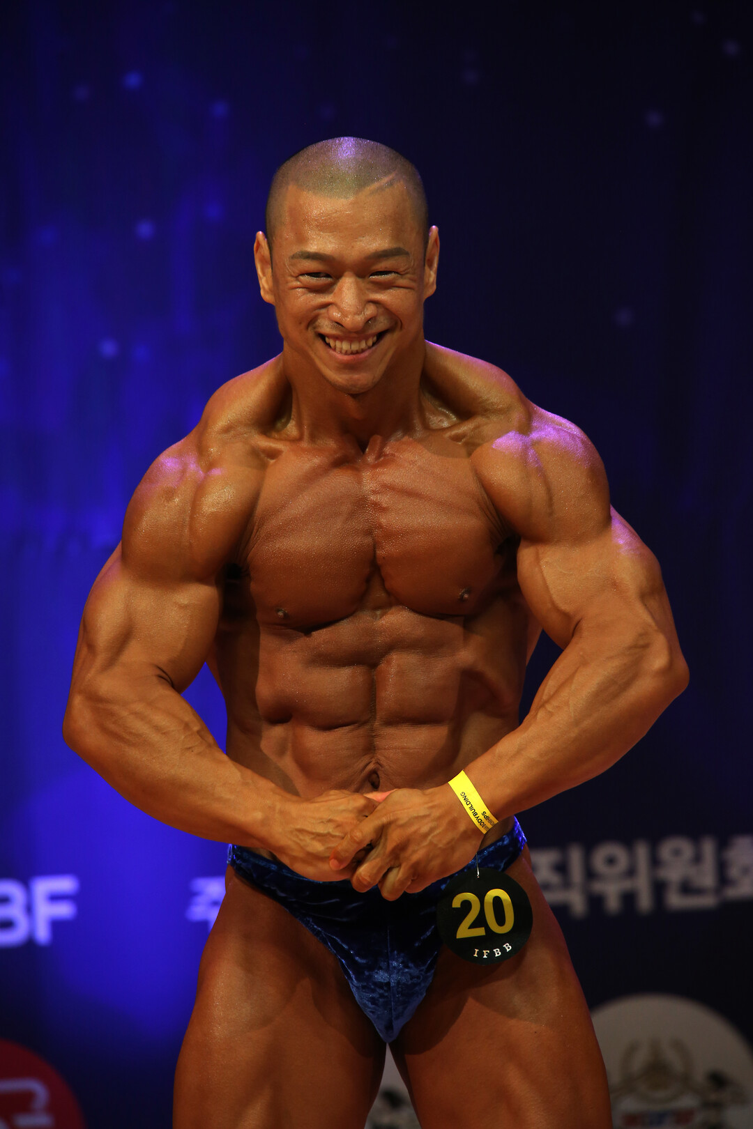 [사진설명] 허윤 선수는 무대에서 자신의 육체미(肉體美)을 뽐내고 있다.