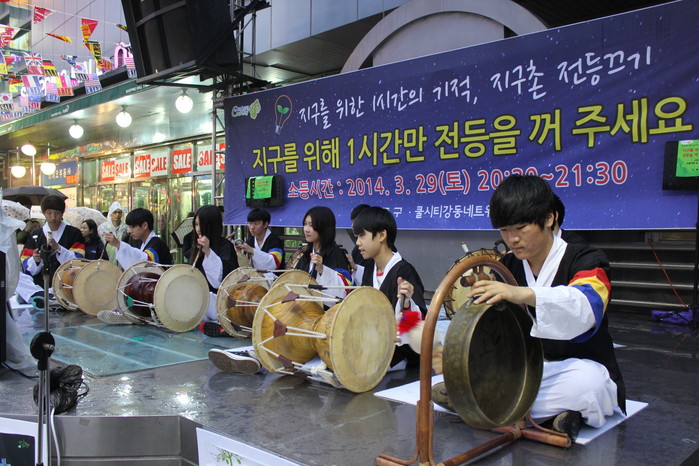 | △ 지난 해 전등끄기 행사에 참여한 사물놀이패가 공연을 하고 있다. |