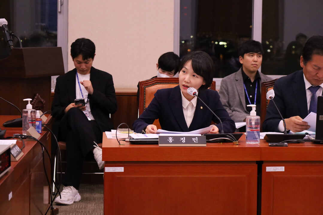 [사진설명] 더불어민주당 홍정민 의원(경기 고양병)이 지난 10일 열린 국회 산자중기위 국정감사에서 지리하고 있다.