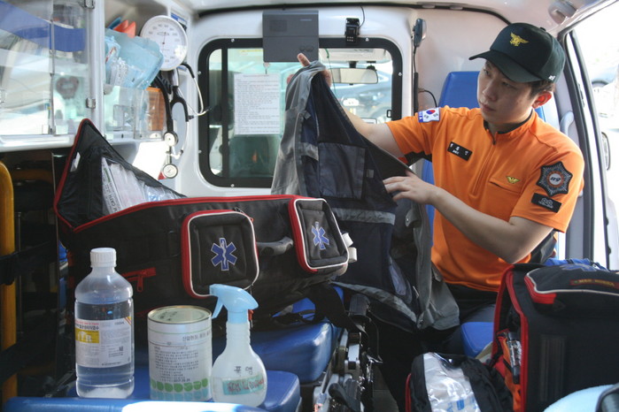 시 소방안전본부는 생리식염수, 정맥주사, 얼음 조끼 등 폭염 구급·장비를 갖춘 119폭염구급차량 29대를 활용해 폭염피해 최소화를 위한 구급활동을 펼치고 있다고 12일 밝혔다.