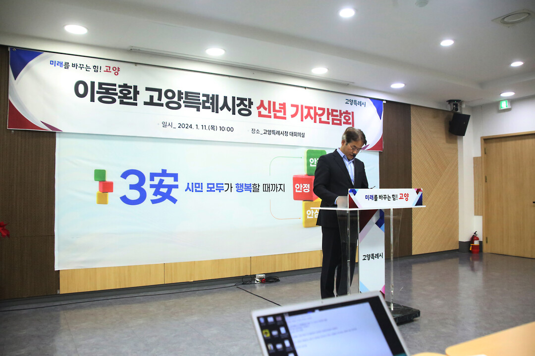 [부자동네타임즈 = 김인수 기자] 11일 10시 고양특례시청 대회의실에서 이동환 고양시장이 2024년 고양특례시 승격 2주년을 맞아 고양시의 신 경제축을 살리고 안전축을 세우는 2대 축 강화의 비전을 발표했다.