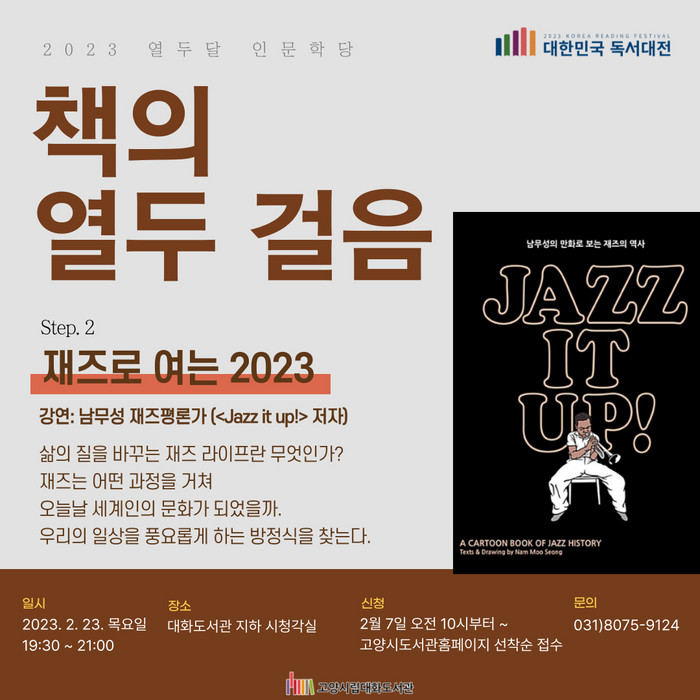 [부자동네타임즈 김인수기자] 고양특례시(시장 이동환)가 2월 23일 오후 7시30분에 제10회 대한민국 독서대전 개최 기념 연중 프로그램 ‘책의 열두 걸음: 열두달 인문학당’의 두 번째 강연을 대화 도서관에서 운영한다.
